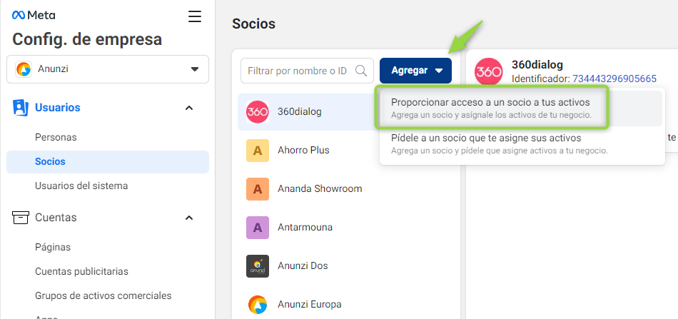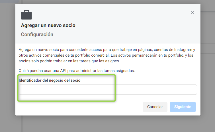 Para acceder a las cuentas de Meta (Cuenta publicitaria, Facebook, Instagram, Pixeles, Catálogos) necesitamos crear una vinculación de socios.
